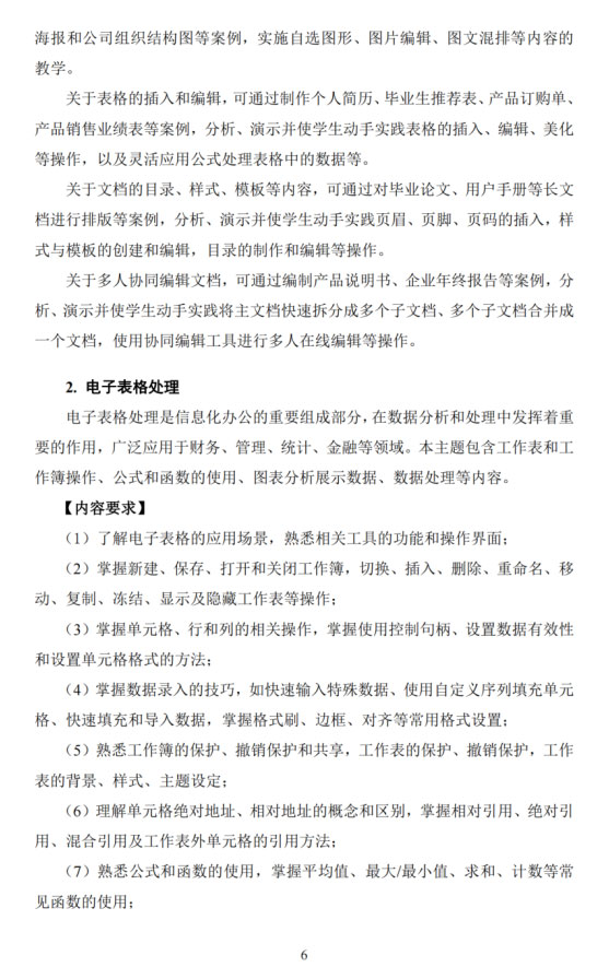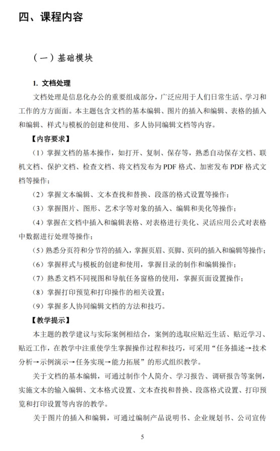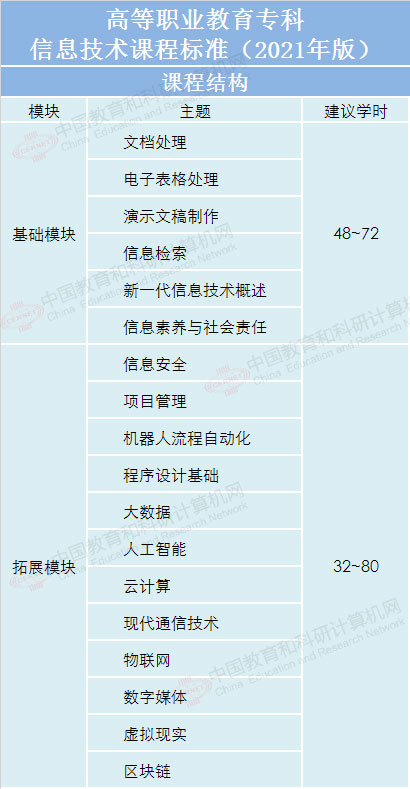《高等职业教育专科信息技术课程标准(2021年版)》部分内容详情如下: