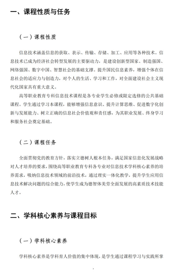文件全文下载>>高等职业教育专科信息技术课程标准(2021版)